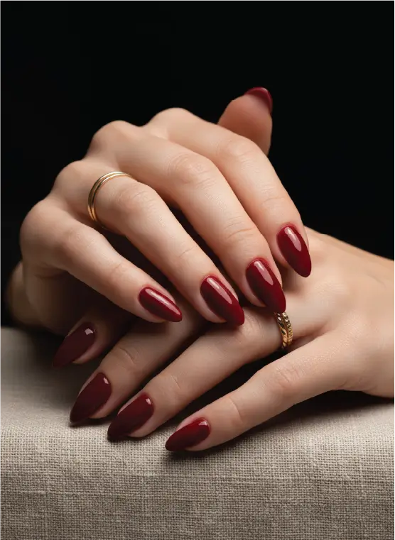 Cuticle soak, nails cut and shaped, cuticle trim, hand massage and polish.